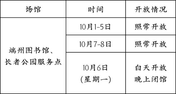 秋色宜人,书香盈袖。值此国庆节与中秋节双节同庆之际,端州图书馆全体员工向您致以诚挚的节日问候!为方便您合理安排学习与阅读时间,现将我馆2025年国庆节、中秋节期间开放安排公告如下: